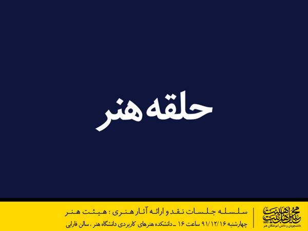 جلسه توجیهی یعنی همان پیش درآمد بر حلقه هنر روز چهارشنیه ۱۶ اسفندماه در سالن فارابی دانشگاه هنر با استقبال خوب شما دوستان عزیز هنرمند و هنردوست برگزار شد.