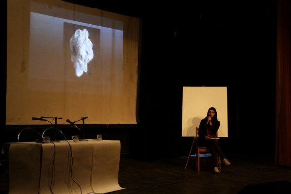 اینبار الهه پیرغیبی از استان اصفهان مهمان جمع حلقه هنر بود و آثار خود را به حلقه هنر آورده بود. آثاری که با ورود به لابی تالار فارابی، ابتدا میتوانستی لمسشان کنی و سپس با ورود به سالن، صحبتهای صاحب اثر را نیز بشنوی.