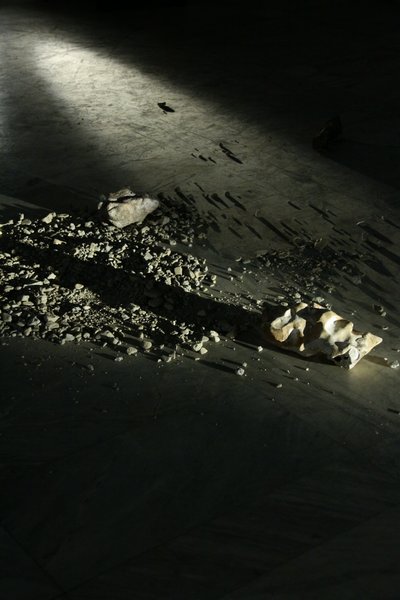 مجموعه مجسمههای «نقش اتفاق بر صورت سنگ» سنگهایی با ابعاد و اشکال مختلف بودند که نقشی حسابشده با تاکید بر نقشاتفاقهای موجود بر آنها ایجاد شده بود تا -از منظر هنرمند- به تکامل برسند. در این مجموعه حتی سنگی به چشم میخورد که حالت بکر خود را حفظ کرده بودند و به گفتهی پیرغیبی، خود دارای تکامل بود و بینیار از هرگونه تغییر.